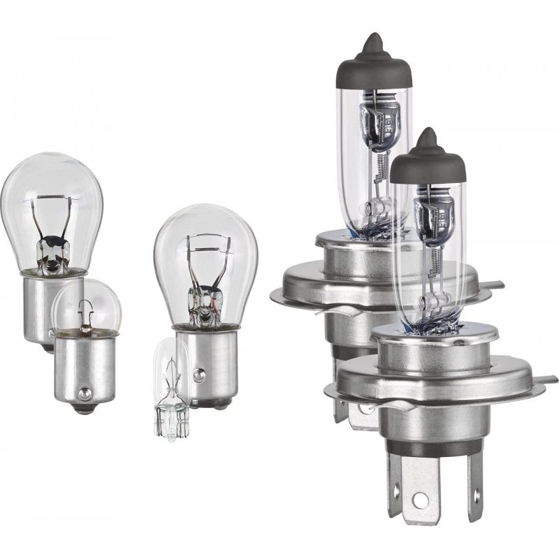 Contenido: 2x H4, 1x R5W, 1x P21W, 1x P21 / 5W, 1x PY21W, 1x W5W y 3x fusibles 15 A, 20 A, 30 A)